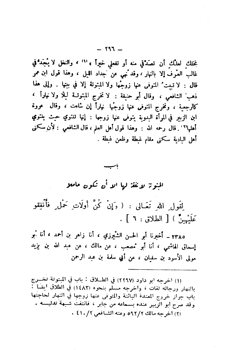 وَالنَّخْل لَا يُجَدُّ فِي غَالب الْعرف إِلا بِالنَّهَارِ، وَقد نُهي عَنْ جدَاد اللَّيْل، وَهَذَا قَول ابْن عُمَر، قَالَ: لَا تبيتُ الْمُتَوفَّى عَنْهَا زوجُها وَلَا المبتوتة إِلا فِي بَيتهَا.