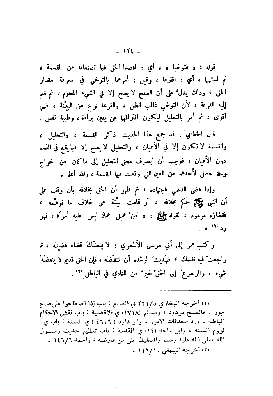 وَكَتَبَ عُمَرُ إِلَى أَبِي مُوسَى الأَشْعَرِيِّ: «لَا يَمْنَعَنَّكَ قَضَاءٌ قَضَيْتَهُ، ثُمَّ رَاجَعْتَ فِيهِ نَفْسَكَ، فَهُدِيتَ لِرُشْدِهِ أَنْ تَنْقُضَهُ، فَإِنَّ الْحَقَّ قَدِيمٌ لَا يَنْقُضُهُ شَيْءٌ، وَالرُّجُوعُ إِلَى الْحَقِّ خَيْرٌ مِنَ التَّمَادِي فِي الْبَاطِلِ».