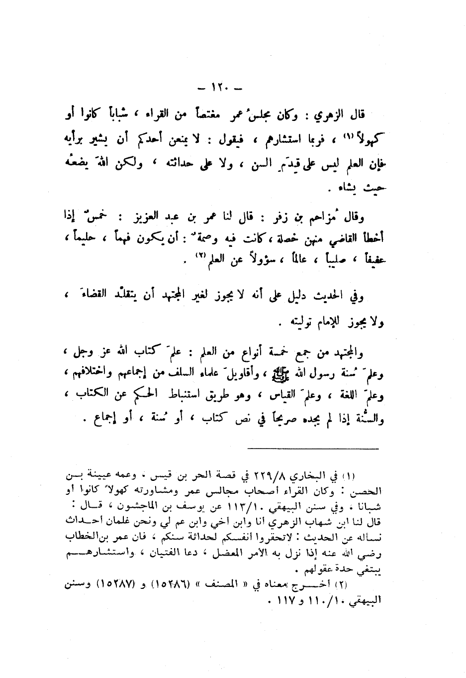 قَالَ الزُّهْرِيُّ: وَكَانَ مَجْلِسُ عُمَرَ مُغْتَصًّا مِنَ الْقُرَّاءِ، شَبَابًا كَانُوا أَوْ كُهُولا، فَرُبَّمَا اسْتَشَارَهُمْ، فَيَقُولُ: «لَا يَمْنَعَنَّ أَحَدُكُمْ أَنْ يُشِيرَ بِرَأْيِهِ فَإِنَّ الْعِلْمَ لَيْسَ عَلَى قِدَمِ السِّنِّ، وَلا عَلَى حَدَاثَتِهِ، وَلَكِنَّ اللَّهَ يَضَعُهُ حَيْثُ يَشَاءُ».
