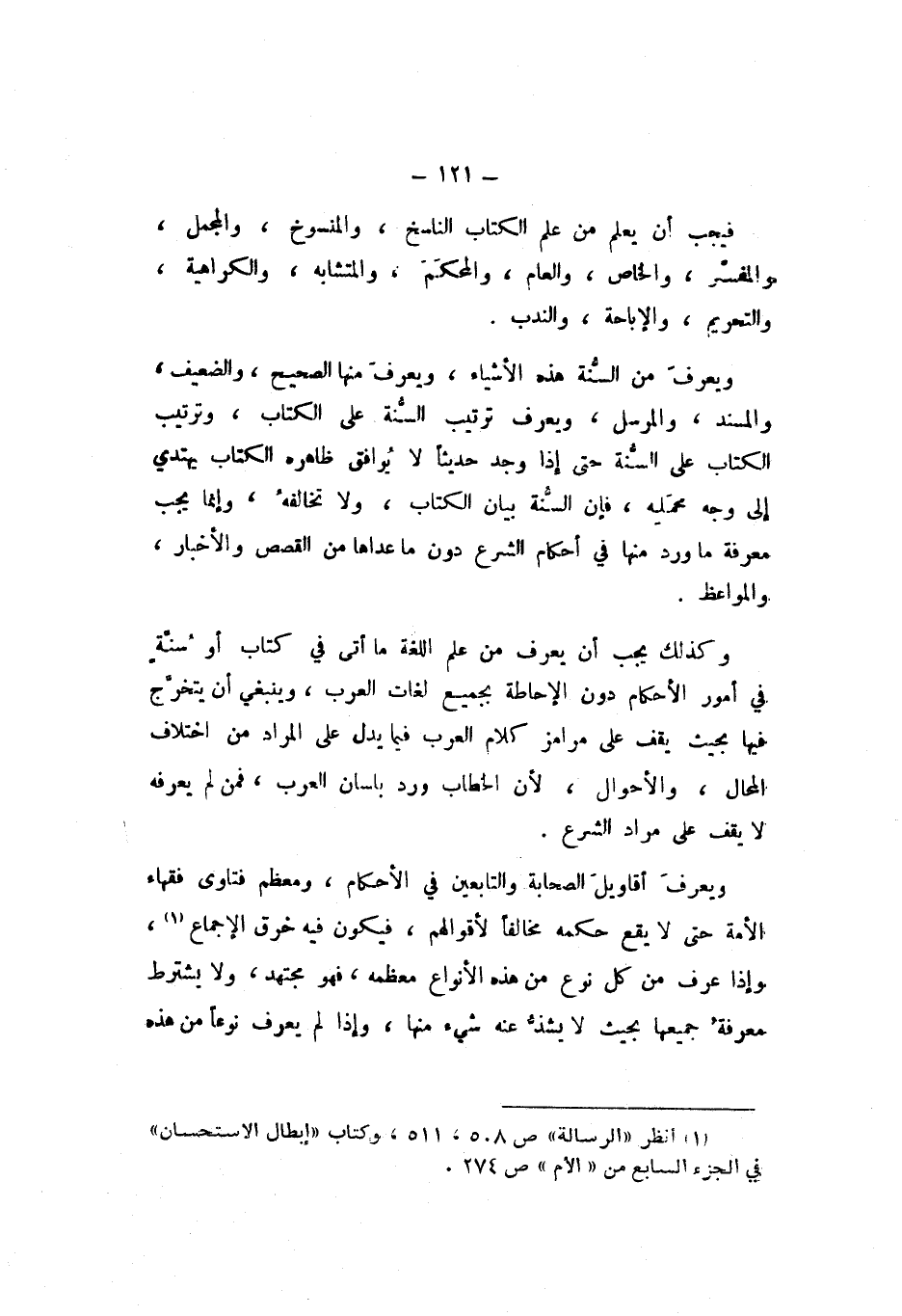 وَيَعْرِفَ مِنَ السُّنَّةِ هَذِهِ الأَشْيَاءَ، وَيَعْرِفَ مِنْهَا الصَّحِيحَ، وَالضَّعِيفَ، وَالْمُسْنَدَ، وَالْمُرْسَلَ، وَيَعْرِفَ تَرْتِيبَ السُّنَّةِ عَلَى الْكِتَابِ، وَتَرْتِيبَ الْكِتَابِ عَلَى السُّنَّةِ حَتَّى إِذَا وَجَدَ حَدِيثًا لَا يُوَافِقُ ظَاهِرُهُ الْكِتَابَ يَهْتَدِي إِلَى وَجْهِ مَحْمَلِهِ، فَإِنَّ السُّنَّةَ بَيَانُ الْكِتَابِ، وَلا تُخَالِفُهُ، وَإِنَّمَا يَجِبُ مَعْرِفَةُ مَا وَرَدَ مِنْهَا فِي أَحْكَامِ الشَّرْعِ دُونَ مَا عَدَاهَا مِنَ الْقَصَصِ وَالأَخْبَارِ وَالْمَوَاعِظِ.