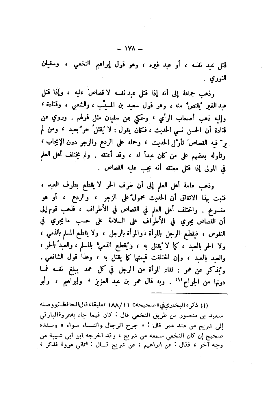 وَذَهَبَ عَامَّةُ أَهْلِ الْعِلْمِ إِلَى أَنَّ طَرَفَ الْحُرِّ لَا يُقْطَعُ بِطَرَفِ الْعَبْدِ، فَثَبَتَ بِهَذَا الاتِّفَاقِ أَنَّ الْحَدِيثَ مَحْمُولٌ عَلَى الزَّجْرِ، وَالرَّدْعِ، أَوْ هُوَ مَنْسُوخٌ.