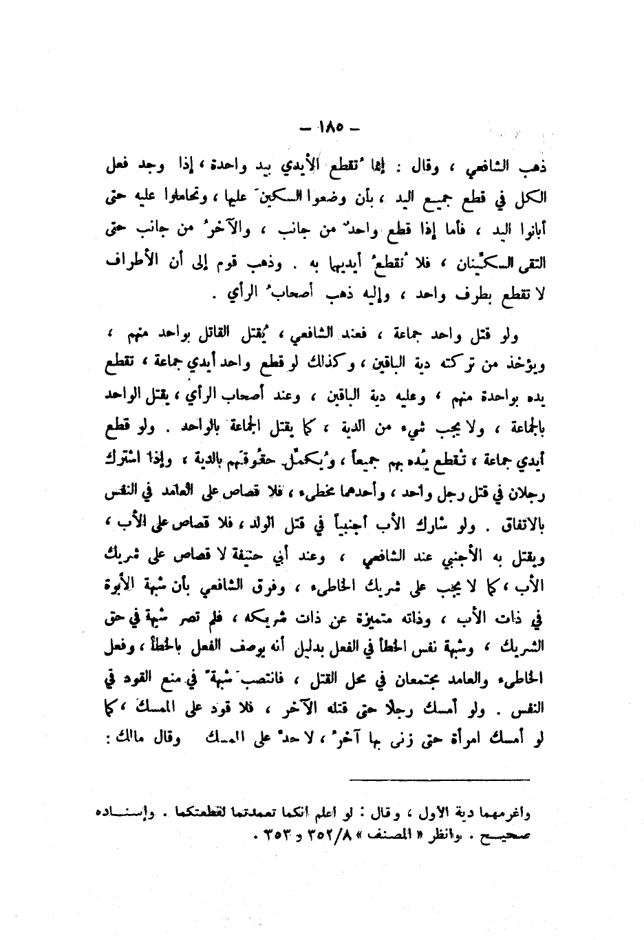 وَلَوْ قَطَعَ أَيْدِيَ جَمَاعَةٍ، تُقْطَعُ يَدُهُ بِهِمْ جَمِيعًا، وَيُكَمِّلُ حُقُوقَهُمْ بِالدِّيَةِ، وَإِذَا اشْتَرَكَ رَجُلانِ فِي قَتْلِ رَجُلٍ وَاحِدٍ، وَأَحَدُهُمَا مُخْطِئٌ، فَلا قِصَاصَ عَلَى الْعَامِدِ فِي النَّفْسِ بِالاتِّفَاقِ.