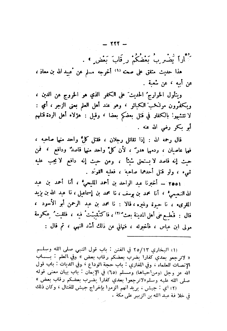 كُفَّارًا يَضْرِبُ بَعْضُكُمْ رِقَابَ بَعْضٍ».