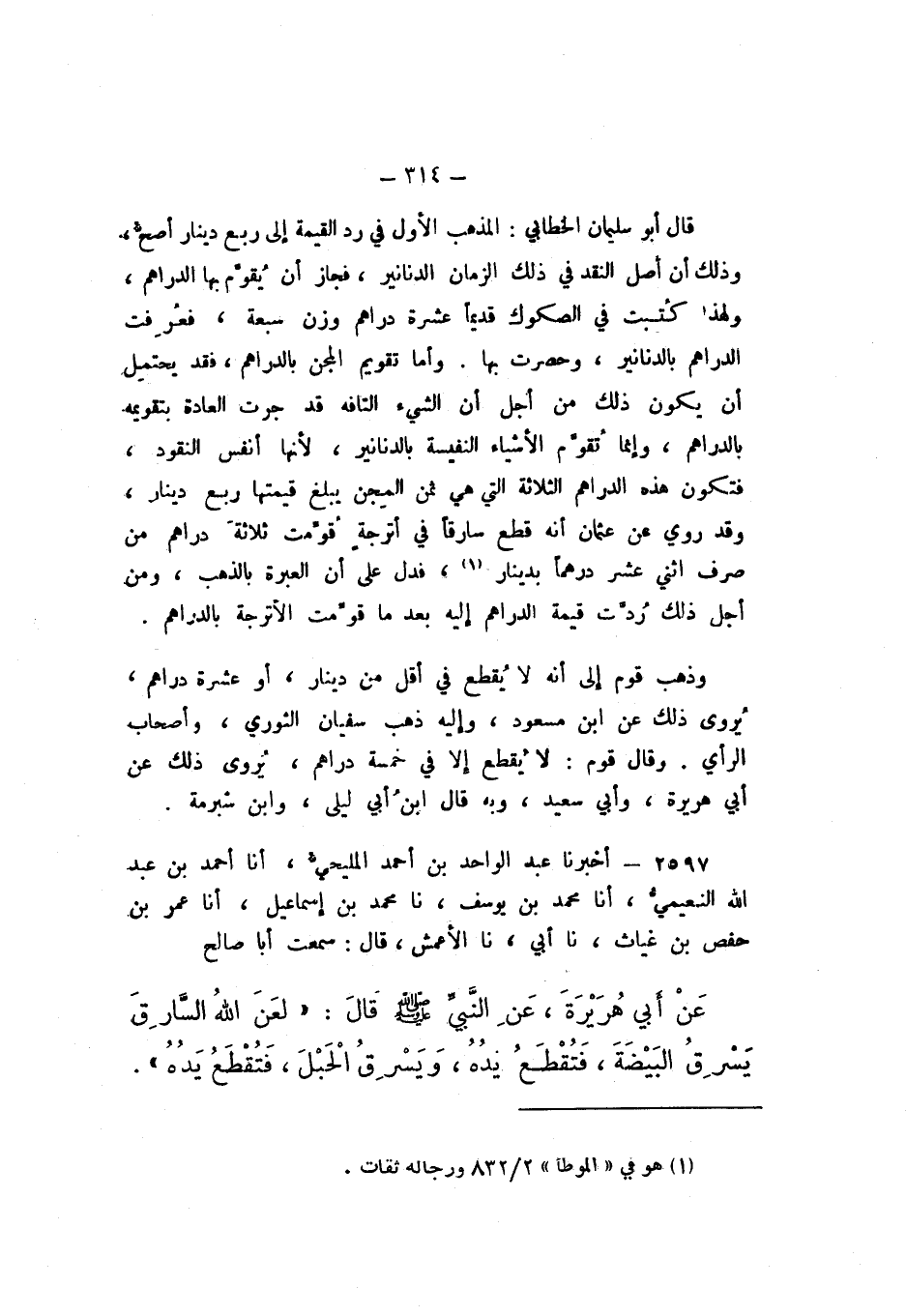 قَالَ أَبُو سُلَيْمَانَ الْخَطَّابِيُّ: الْمَذْهَبُ الأَوَّلُ فِي رَدِّ الْقِيمَةِ إِلَى رُبْعِ دِينَارٍ أَصَحُّ، وَذَلِكَ أَنَّ أَصْلَ النَّقْدِ فِي ذَلِكَ الزَّمَانِ الدَّنَانِيرُ، فَجَازَ أَنْ يُقَوَّمَ بِهَا الدَّرَاهِمُ، وَلِهَذَا كُتِبَتْ فِي الصُّكُوكِ قَدِيمًا عَشَرَةُ دَرَاهِمَ وَزْنُ سَبْعَةٍ، فَعُرِفَتِ الدَّرَاهِمُ بِالدَّنَانِيرِ، وَحُصِرَتْ بِهَا.