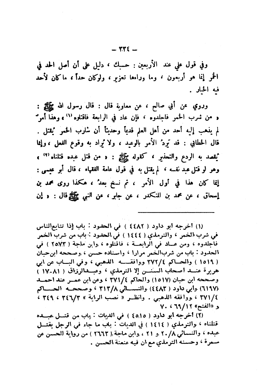 وَرُوِيَ عَنْ أَبِي صَالِحٍ، عَنْ مُعَاوِيَةَ، قَالَ: قَالَ رَسُولُ اللَّهِ صَلَّى اللهُ عَلَيْهِ وَسَلَّمَ: «مَنْ شَرِبَ الْخَمْرَ فَاجْلِدُوهُ، فَإِنْ عَادَ فِي الرَّابِعَةِ فَاقْتُلُوهُ»، وَهَذَا أَمْرٌ لَمْ يَذْهَبْ إِلَيْهِ أَحَدٌ مِنْ أَهْلِ الْعِلْمِ قَدِيمًا وَحَدِيثًا أَنَّ شَارِبَ الْخَمْرِ يُقْتَلُ.