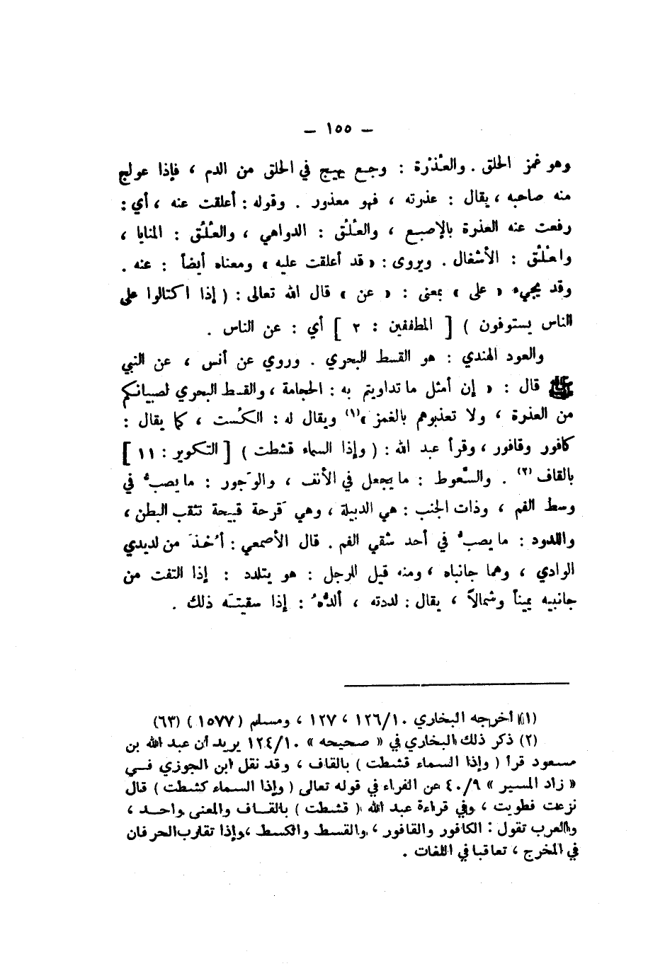 وَالسَّعُوطُ: مَا يُجْعَلُ فِي الأَنْفِ، وَالْوَجُورُ: مَا يُصَبُّ فِي وَسَطِ الْفَمِ، وَذَاتِ الْجُنُبِ: هِيَ الدُّبَيْلَةُ، وَهِيَ قُرْحَةٌ قَبِيحَةٌ تَثْقُبُ الْبَطْنَ، وَاللَّدُودُ: مَا يُصَبُّ فِي أَحَدِ شِقَّيِ الْفَمِ.