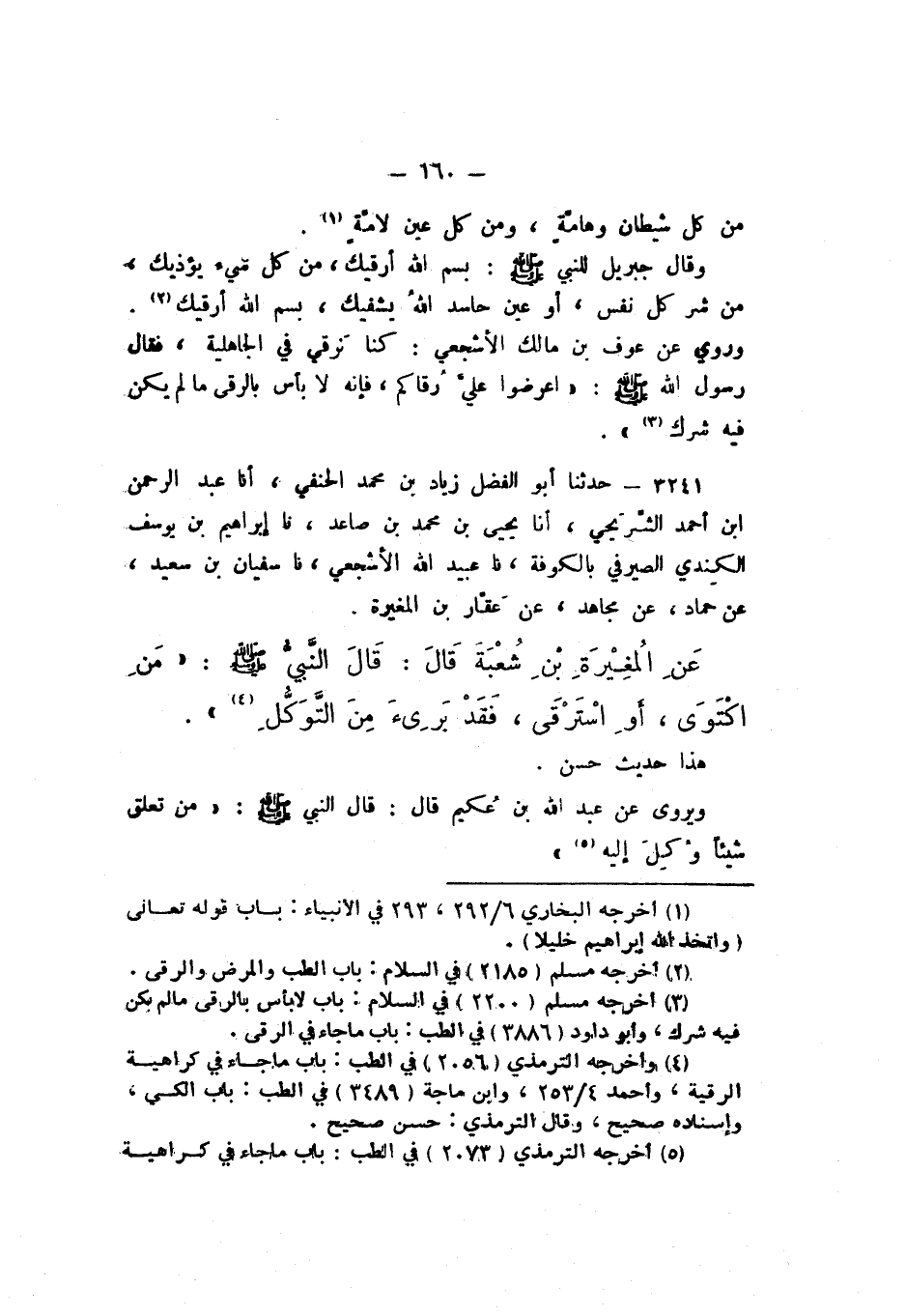 3241 - حَدَّثَنَا أَبُو الْفَضْلِ زِيَادُ بْنُ مُحَمَّدٍ الْحَنَفِيُّ، أَنا عَبْدُ الرَّحْمَنِ بْنُ أَحْمَدَ الشَّرِيحِيُّ، أَنا يَحْيَى بْنُ مُحَمَّدِ بْنِ صَاعِدٍ، نَا إِبْرَاهِيمُ بْنُ يُوسُفَ الْكِنْدِيُّ الصَّيْرَفِيُّ، بِالْكُوفَةِ، نَا عُبَيْدُ اللَّهِ الأَشْجَعِيُّ، نَا سُفْيَانُ بْنُ سَعِيدٍ، عَنْ حَمَّادٍ، عَنْ مُجَاهِدٍ، عَنْ عَقَّارِ بْنِ الْمُغِيرَةِ، عَنِ الْمُغِيَرَةِ بْنِ شُعْبَةَ، قَالَ: قَالَ النَّبيُّ صَلَّى اللهُ عَلَيْهِ وَسَلَّمَ: «مَنِ اكْتَوَى، أَوِ اسْتَرْقَى، فَقَدْ بَرِئَ مِنَ التَّوَكُّلِ».