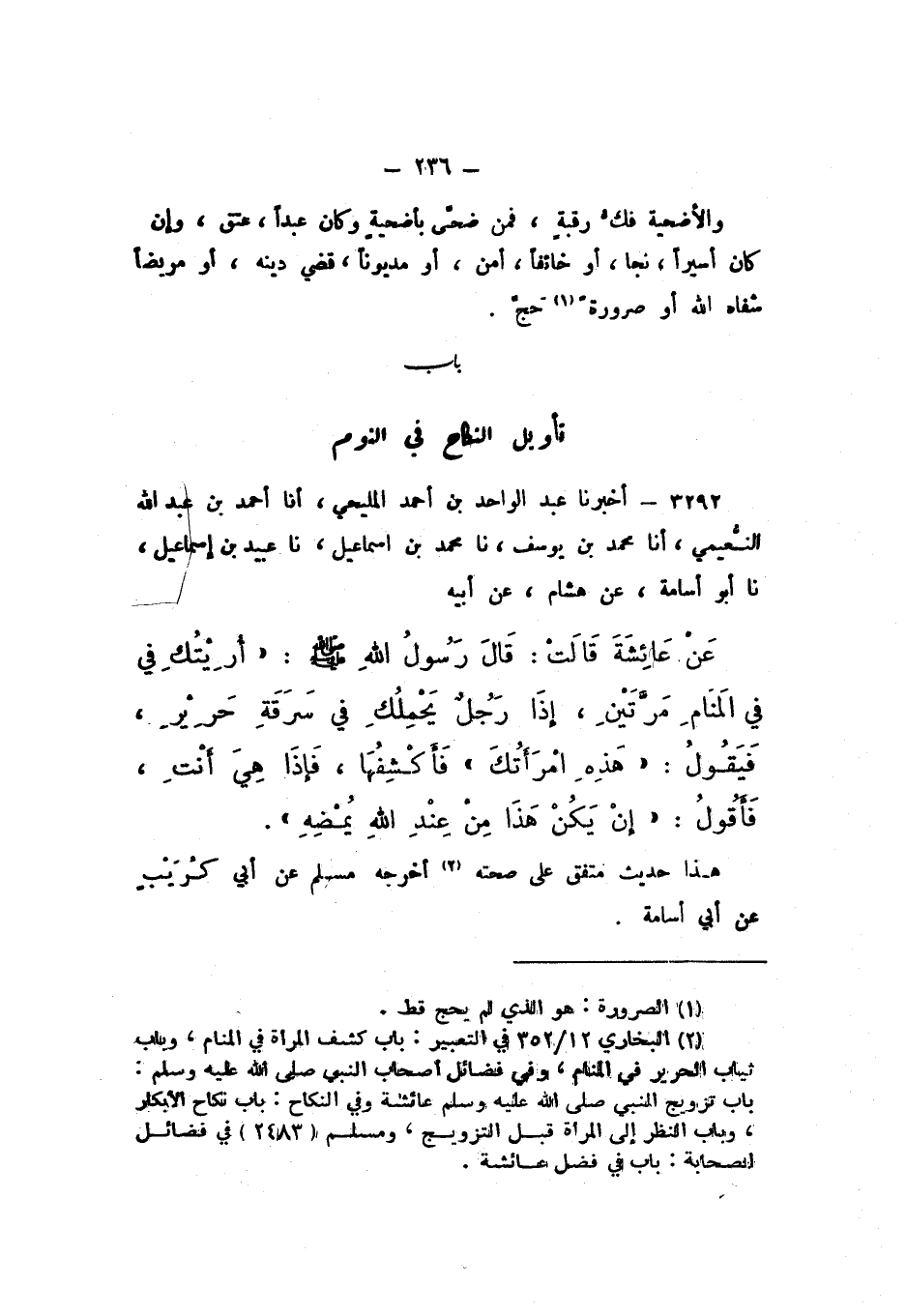بَابُ تَأْوِيلِ النِّكَاحِ فِي النَّوْمِ