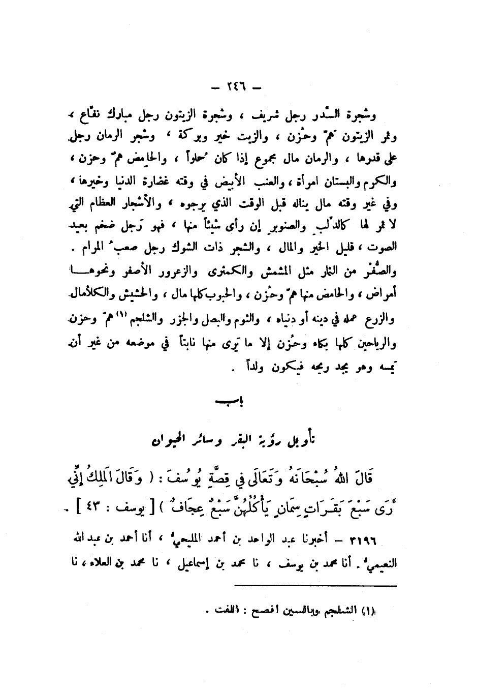 بَاب تَأْوِيل رُؤْيَة الْبَقر وَسَائِر الْحَيَوَان