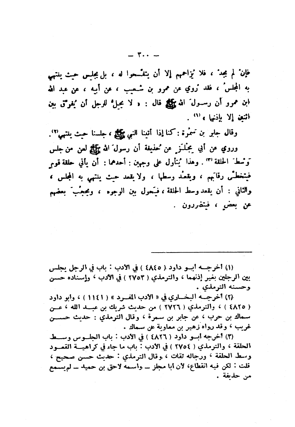وَرُوِيَ عَنْ أَبِي مجلز، عَنْ حُذَيْفَةَ، «أَنَّ رَسُولَ اللَّهِ صَلَّى اللهُ عَلَيْهِ وَسَلَّمَ لَعَنَ مَنْ جَلَسَ وَسْطَ الْحَلْقَةِ».