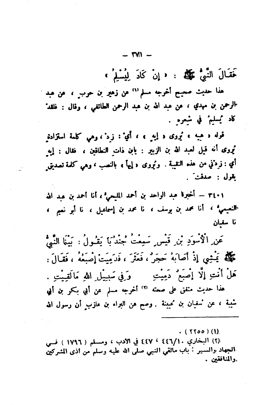 فَقَالَ النَّبِيُّ صَلَّى اللهُ عَلَيْهِ وَسَلَّمَ: «إِنْ كَادَ ليسلم».