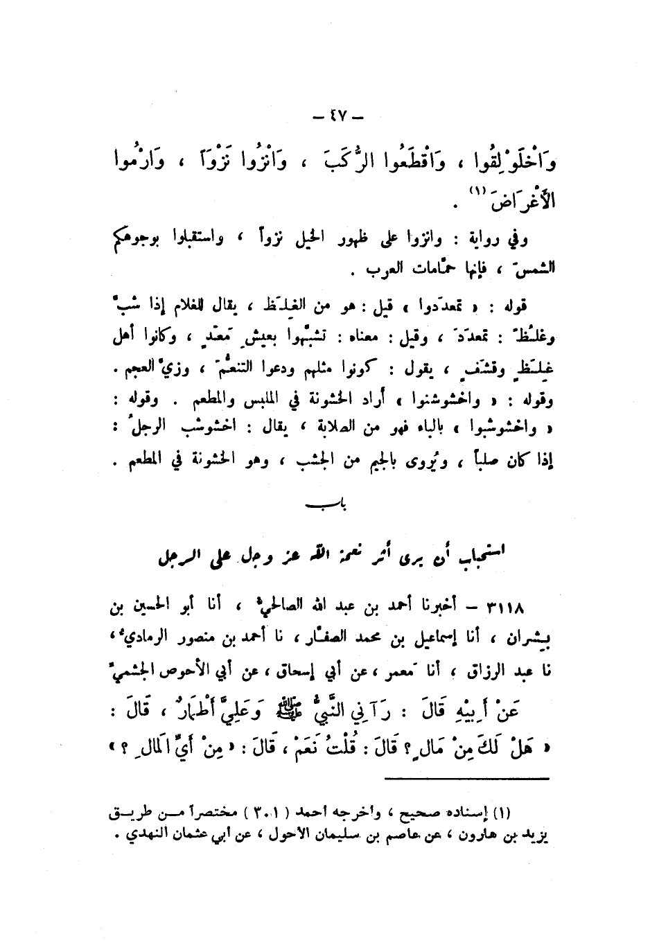 بَابُ اسْتِحْبَابِ أَنْ يُرَى أَثَرُ نِعْمَةِ اللَّهِ عَزَّ وَجَلَّ عَلَى الرَّجُلِ