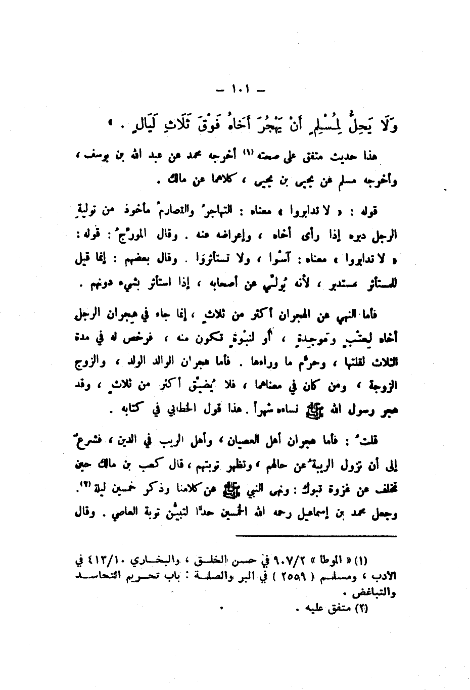 وَلا يَحِلُّ لِمُسْلِمٍ أَنْ يَهْجُرَ أَخَاهُ فَوْقَ ثَلاثِ لَيَالٍ».