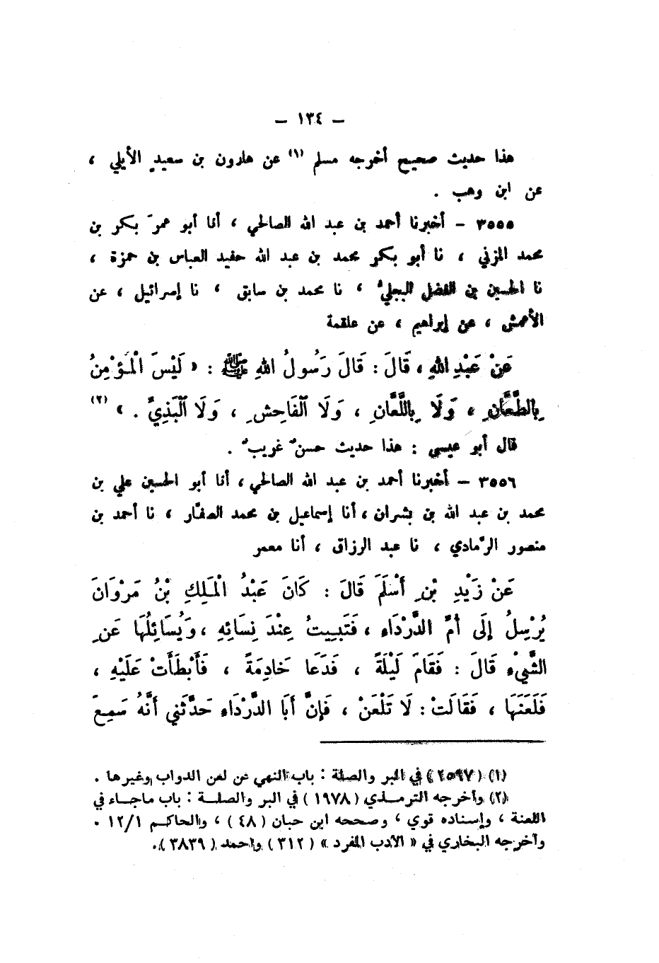 3555 - أَخْبَرَنَا أَحْمَدُ بْنُ عَبْدِ اللَّهِ الصَّالِحِيُّ، أَنا أَبُو عُمَرَ بَكْرُ بْنُ مُحَمَّدٍ الْمُزَنِيُّ، نَا أَبُو بَكْرٍ مُحَمَّدُ بْنُ عَبْدِ اللَّهِ حَفِيدُ الْعَبَّاسِ بْنِ حَمْزَةَ، نَا الْحُسَيْنُ بْنُ الْفَضْلِ الْبَجَلِيُّ، نَا مُحَمَّدُ بْنُ سَابِقٍ، نَا إِسْرَائِيلُ، عَنِ الأَعْمَشِ، عَنْ إِبْرَاهِيمَ، عَنْ عَلْقَمَةَ، عَنْ عَبْدِ اللَّهِ، قَالَ: قَالَ رَسُولُ اللَّهِ صَلَّى اللهُ عَلَيْهِ وَسَلَّمَ: «لَيْسَ الْمُؤْمِنُ بِالطَّعَّانِ، وَلا بِاللَّعَّانِ، وَلا الْفَاحِشِ، وَلا الْبَذِيِّ».