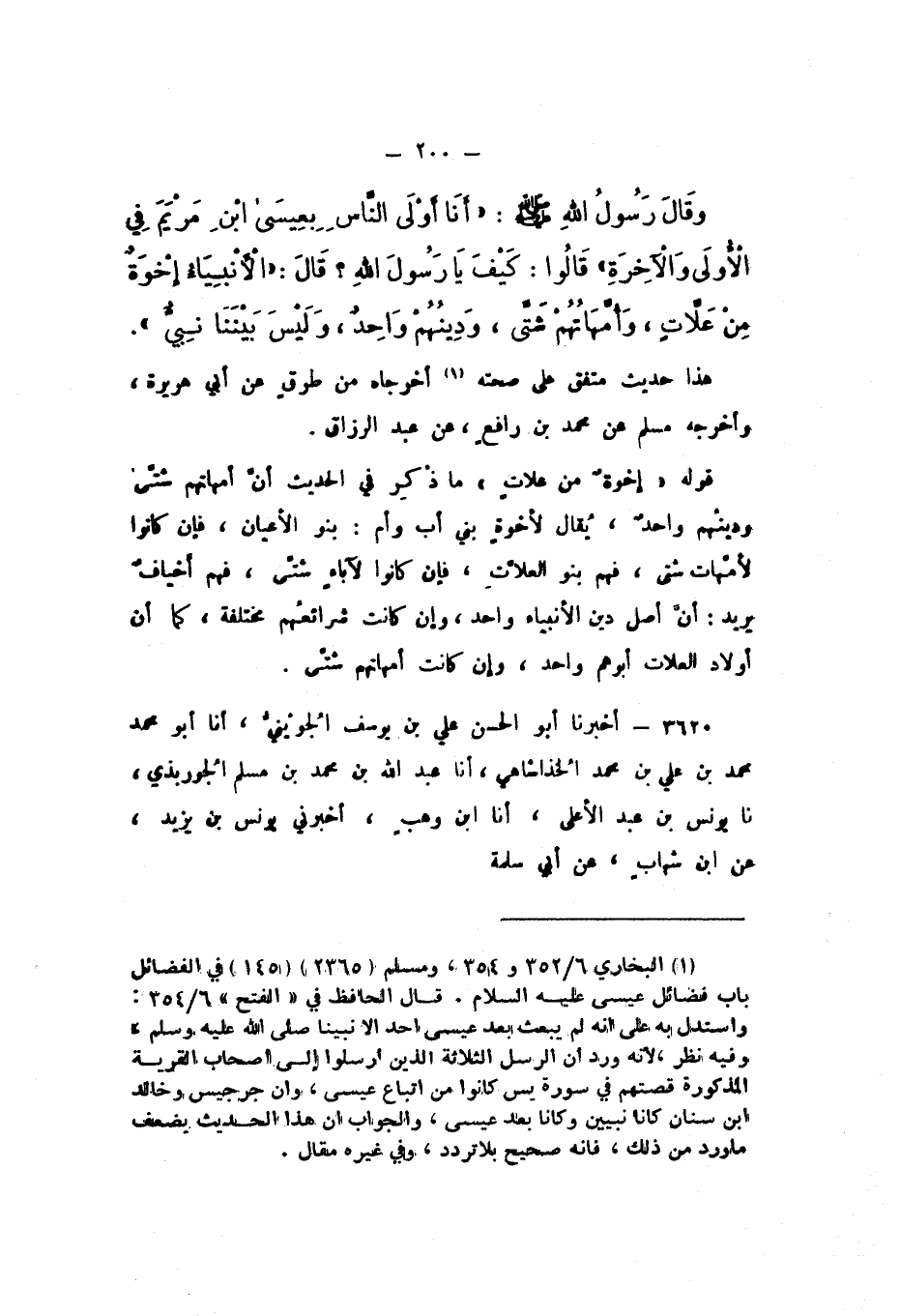 3619 - وقَالَ رَسُولُ اللَّهِ صَلَّى اللهُ عَلَيْهِ وَسَلَّمَ: " أنَا أَوْلَى النَّاسِ بِعِيسَى ابْنِ مَرْيَمَ فِي الأُولَى وَالآخِرَةِ، قَالُوا: كَيْفَ يَا رَسُولَ اللَّهِ؟ قَالَ: الأَنْبِيَاءُ إِخْوَةٌ مِنْ عَلاتٍ، وَأُمَّهَاتُهُمْ شَتَّى، وَدِينُهُمْ وَاحِدٌ، وَلَيْسَ بَيْنَنَا نَبِيٌّ ".