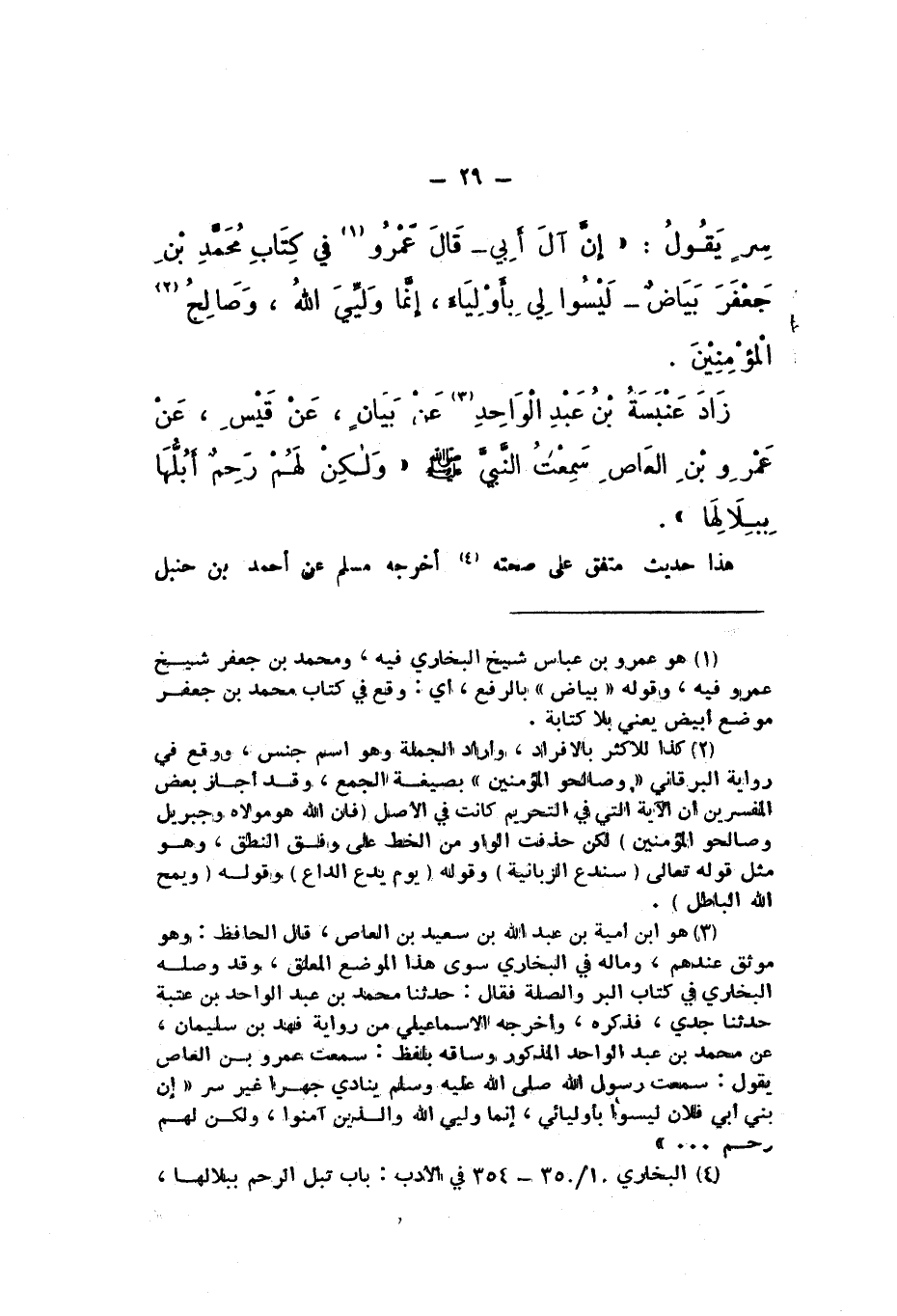 سِرٍّ، يَقُولُ: " إِنَّ آلَ أَبِي، قَالَ عَمْرٌو: فِي كِتَابِ مُحَمَّدِ بْنِ جَعْفَرٍ بَيَاضٌ، لَيْسُوا لِي بِأَوْلِيَاءَ، إِنَّمَا وَلِيِّيَ اللَّهُ، وَصَالِحُ الْمُؤْمِنِينَ ".