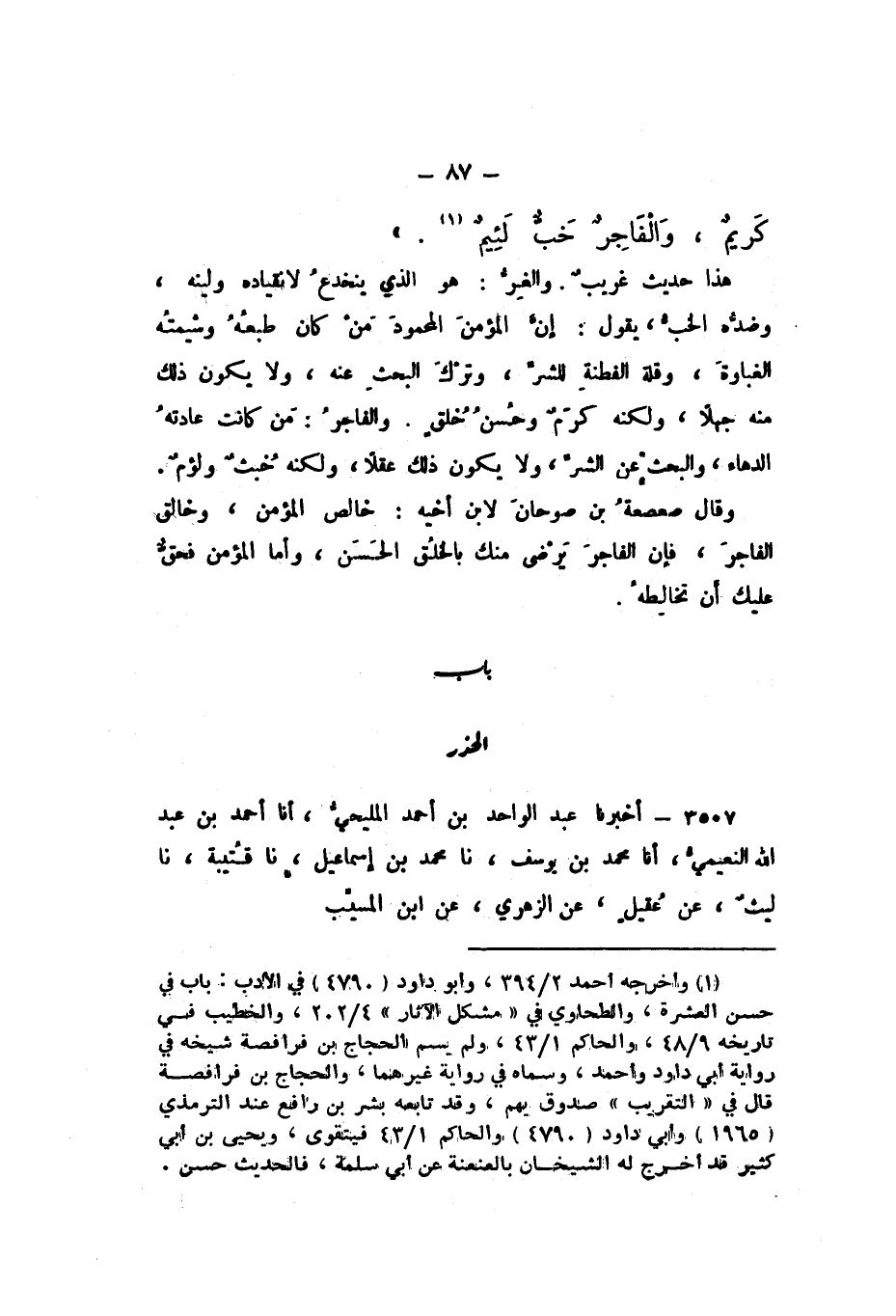 كَرِيمٌ، وَالْفَاجِرُ خَبٌّ لَئِيمٌ».