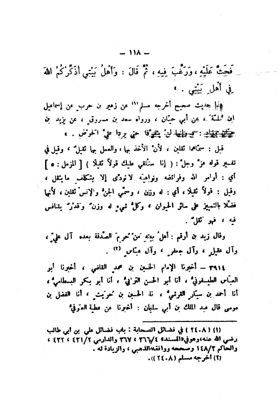 فَحَثَّ عَلَيْهِ، وَرَغَّبَ فِيهِ "، ثُمَّ قَالَ: «وَأَهْلُ بَيْتِي أُذَكِّرُكُمُ اللَّهَ فِي أَهْلِ بَيْتِي».