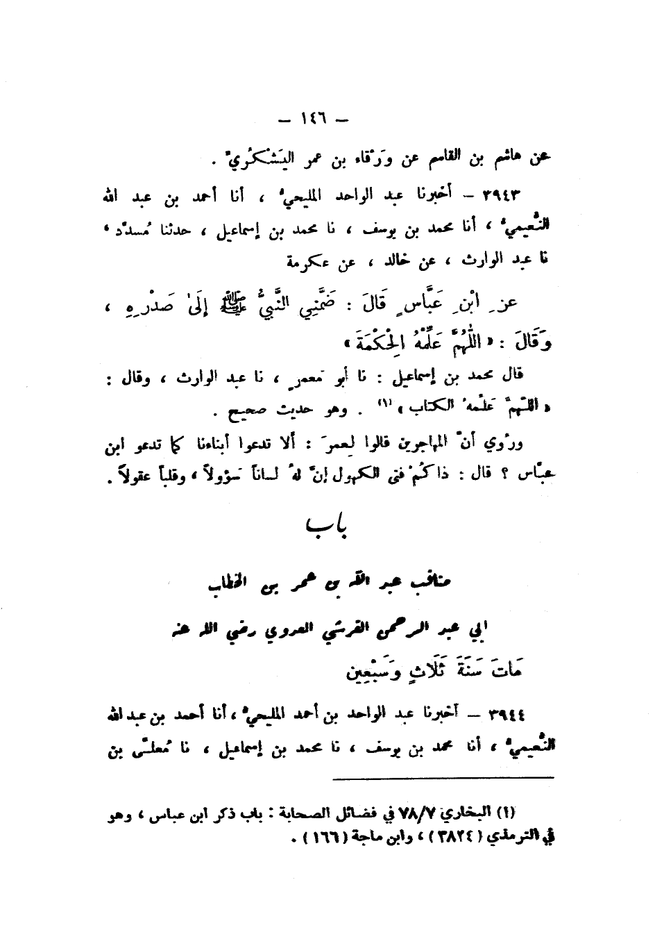 بَابُ مَنَاقِبِ عَبْدِ اللَّهِ بْنِ عُمَرَ بْنِ الْخَطَّابِ أَبِي عَبْدِ الرَّحْمَنِ الْقُرَشِيِّ الْعَدَوِيِّ رَضِيَ اللَّهُ عَنْهُ