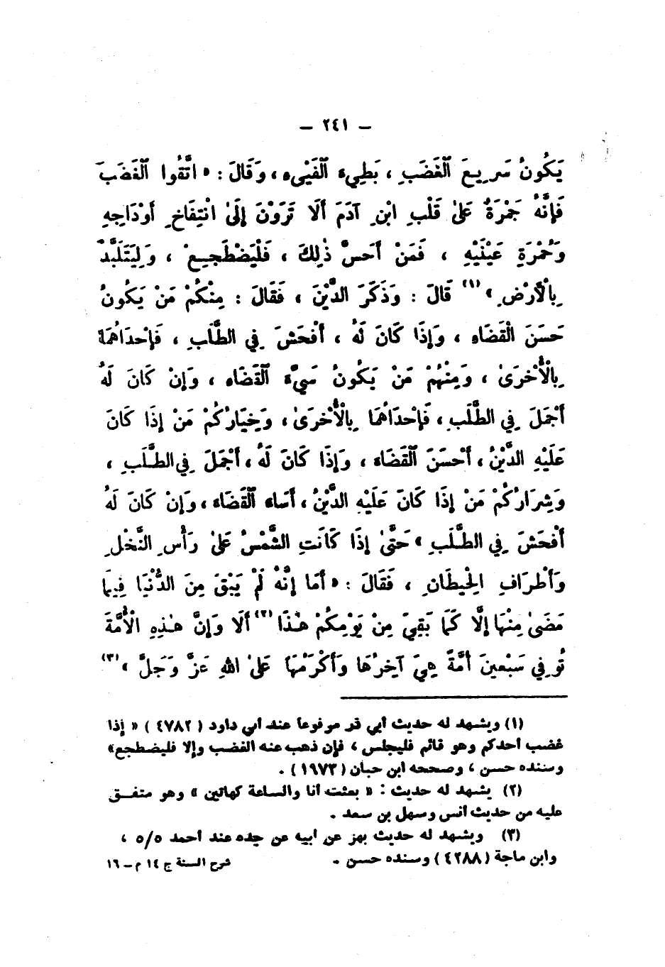 4039 - قَالَ: وَذَكَرَ الدّينَ، فَقَالَ: «مِنْكُمْ مَنْ يَكُونُ حَسَنَ الْقَضَاءِ، وَإِذَا كَانَ لَهُ، أَفْحَشَ فِي الطَّلَبِ، فَإِحْدَاهُمَا بِالأُخْرَى، وَمِنْهُمْ مَنْ يَكُونُ سَيِّئَ الْقَضَاءِ، وَإِنْ كَانَ لَهُ أَجْمَلَ فِي الطَّلَبِ، فَإِحْدَاهُمَا بِالأُخْرَى، وَخِيَارُكُمْ مَنْ إِذَا كَانَ عَلَيْهِ الدَّيْنُ، أَحْسَنَ الْقَضَاءَ، وَإِنْ كَانَ لَهُ، أَجْمَلَ فِي الطَّلَبِ، وَشِرَارُكُمْ مَنْ إِذَا كَانَ عَلَيْهِ الدَّيْنُ، أَسَاءَ الْقَضَاءَ، وَإِنْ كَانَ لَهُ أَفْحَشَ فِي الطَّلَبِ» حَتَّى إِذَا كَانَتِ الشَّمْسُ عَلَى رَأْسِ النَّخْلِ وَأَطْرَافِ الْحِيطَانِ، فَقَالَ: «أَمَا إِنَّهُ لَمْ يَبْقَ مِنَ الدُّنْيَا فِيمَا مَضَى مِنْهَا، إِلا كَمَا بَقِيَ مِنْ يَوْمِكُمْ هَذَا، أَلا وَإِنَّ هَذِهِ الأُمَّةَ تُوفِي سَبْعِينَ أُمَّةً هِيَ آخِرُهَا وَأَكْرَمُهَا عَلَى اللَّهِ عَزَّ وَجَلَّ».