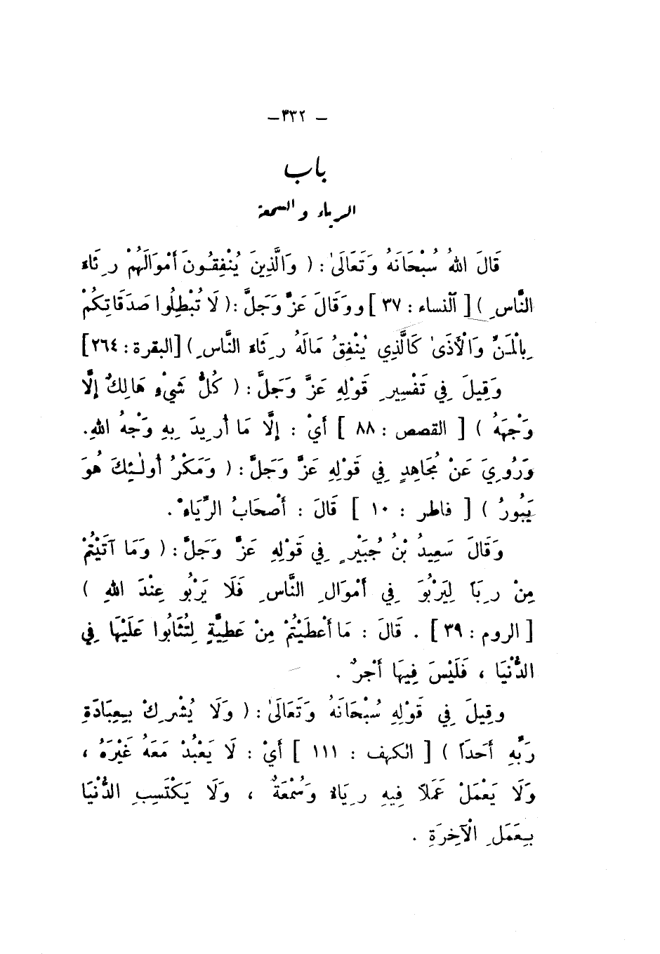 بَابُ الرِّيَاءِ وَالسُّمْعَةِ