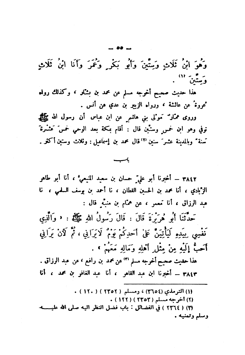وَهُوَ ابْنُ ثَلاثٍ وَسِتِّينَ، وَأَبُو بَكْرٍ، وَعُمَرُ، وَأَنَا ابْنُ ثَلاثٍ وَسِتِّينَ».
