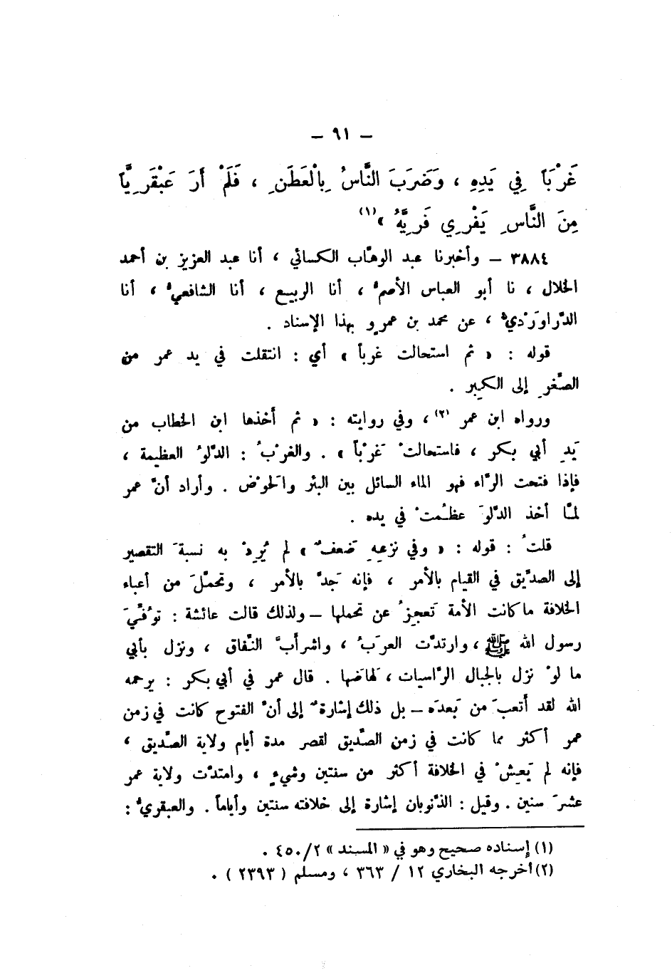 وَرَوَاهُ ابْنُ عُمَرَ، فِي رِوَايَتِهِ، «ثُمَّ أَخَذَهَا ابْنُ الْخَطَّابِ مِنْ يَدِ أَبِي بَكْرٍ، فَاسْتَحَالَتْ غَرْبًا».