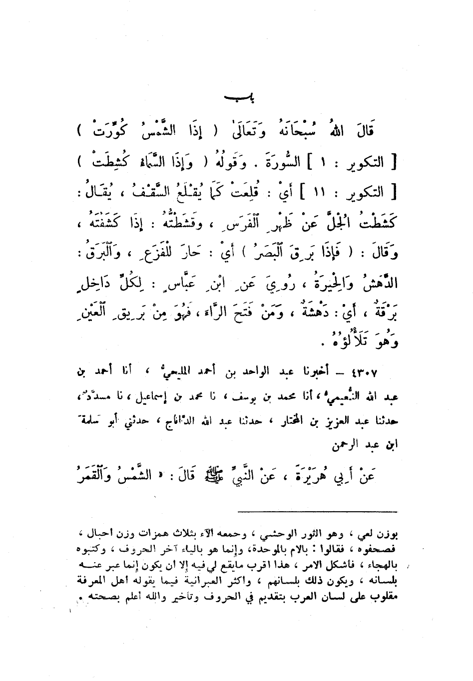 4307 - أَخْبَرَنَا عَبْدُ الْوَاحِدِ بْنُ أَحْمَدَ الْمَلِيحِيُّ، أَنَا أَحْمَدُ بْنُ عَبْدِ اللَّهِ النُّعَيْمِيُّ، أَنَا مُحَمَّدُ بْنُ يُوسُفَ، نَا مُحَمَّدُ بْنُ إِسْمَاعِيلَ، نَا مُسَدَّدٌ، حَدَّثَنَا عَبْدُ الْعَزِيزِ بْنُ الْمُخْتَارِ، حَدَّثَنَا عَبْدُ اللَّهِ الدَّانَاجُ، حَدَّثَنِي أَبُو سَلَمَةَ بْنُ عَبْدِ الرَّحْمَنِ، عَنْ أَبِي هُرَيْرَةَ، عَنِ النَّبِيِّ صَلَّى اللهُ عَلَيْهِ وَسَلَّمَ، قَالَ: «الشَّمْسُ وَالْقَمَرُ