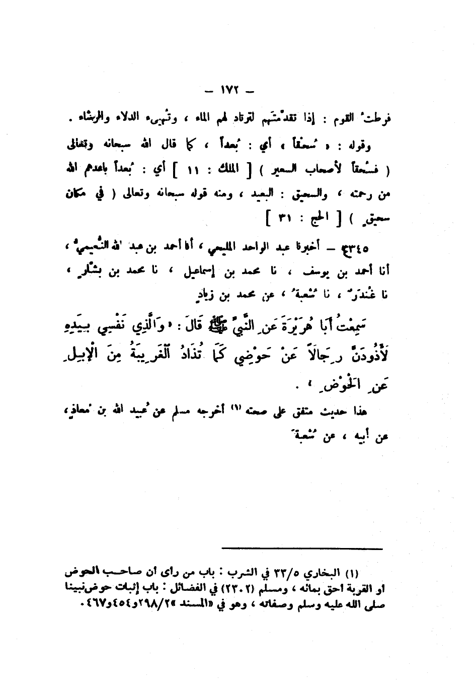4345 - أَخْبَرَنَا عَبْدُ الْوَاحِدِ الْمَلِيحِيُّ، أَنَا أَحْمَدُ بْنُ عَبْدِ اللَّهِ النُّعَيْمِيُّ، أَنَا مُحَمَّدُ بْنُ يُوسُفَ، نَا مُحَمَّدُ بْنُ إِسْمَاعِيلَ، نَا مُحَمَّدُ بْنُ بَشَّارٍ، نَا غُنْدَرٌ، نَا شُعْبَةُ، عَنْ مُحَمَّدِ بْنِ زِيَادٍ، سَمِعْتُ أَبَا هُرَيْرَةَ، عَنِ النَّبِيِّ صَلَّى اللهُ عَلَيْهِ وَسَلَّمَ، قَالَ: «وَالَّذِي نَفْسِي بِيَدِهِ، لأَذُودَنَّ رِجَالا عَنْ حَوْضِي كَمَا تُذَادُ الْغَرِيبَةُ مِنَ الإِبِلِ عَنِ الْحَوْضِ».