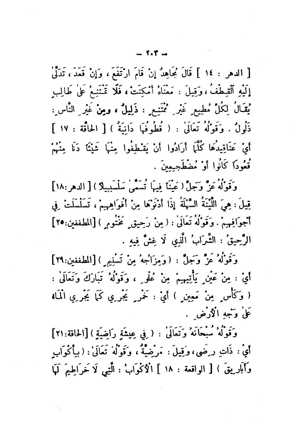 وَقَوله تَعَالَى: {قُطُوفُهَا دَانِيَةٌ} [الحاقة: 23]، أَي: عناقيدها، كُلَّمَا أَرَادوا أَن يقطفوا مِنْهَا شَيْئًا، دنا مِنْهُمْ قعُودا كَانُوا أَوْ مضطجعين.