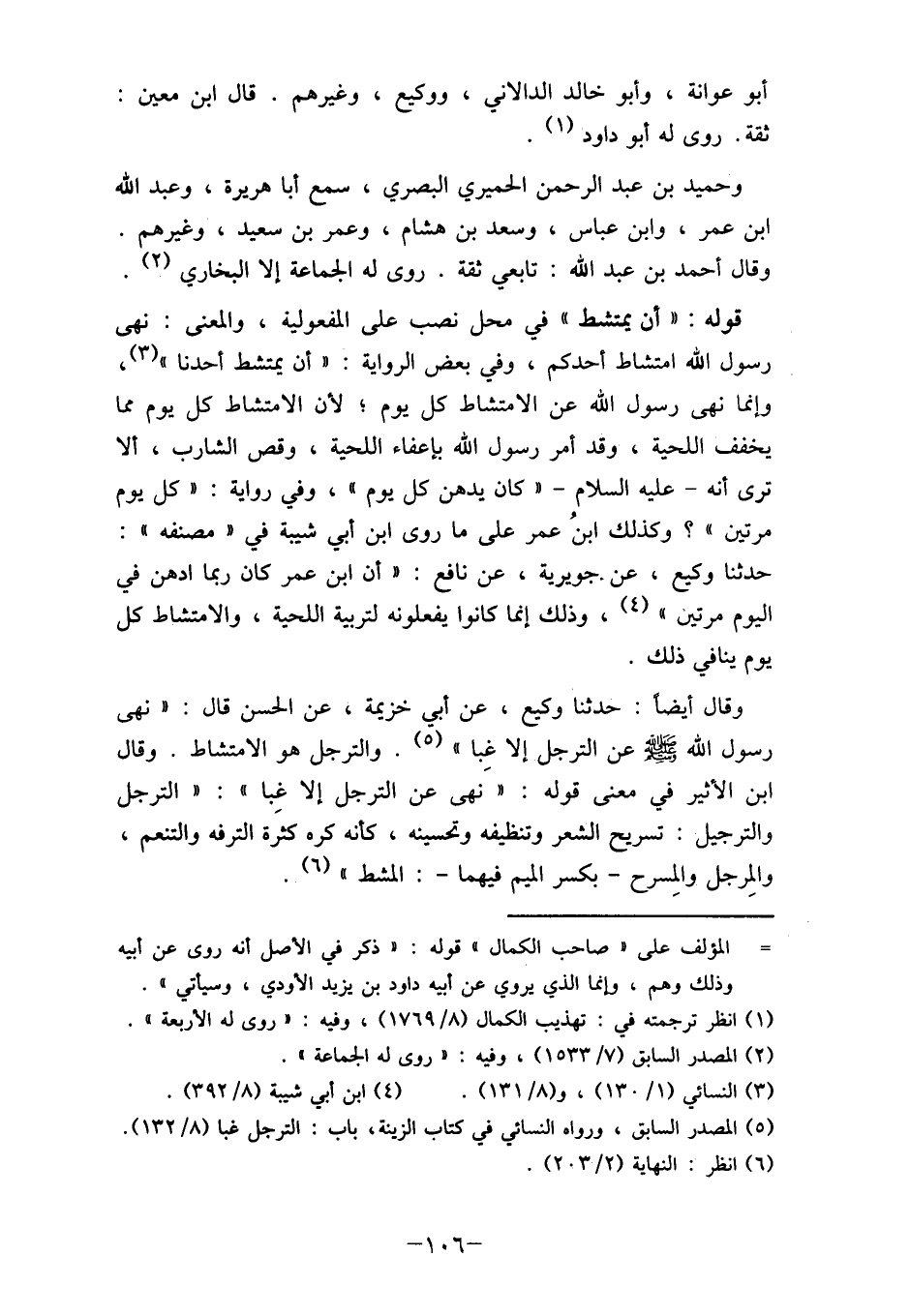 (5) المصدر السابق، ورواه النسائي في كتاب الزينة، باب: الترجل غبا (8/132) .