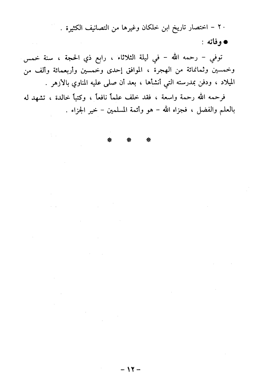 20- اختصار تاريخ ابن خلكان وغيرها من التصانيف الكثيرة.