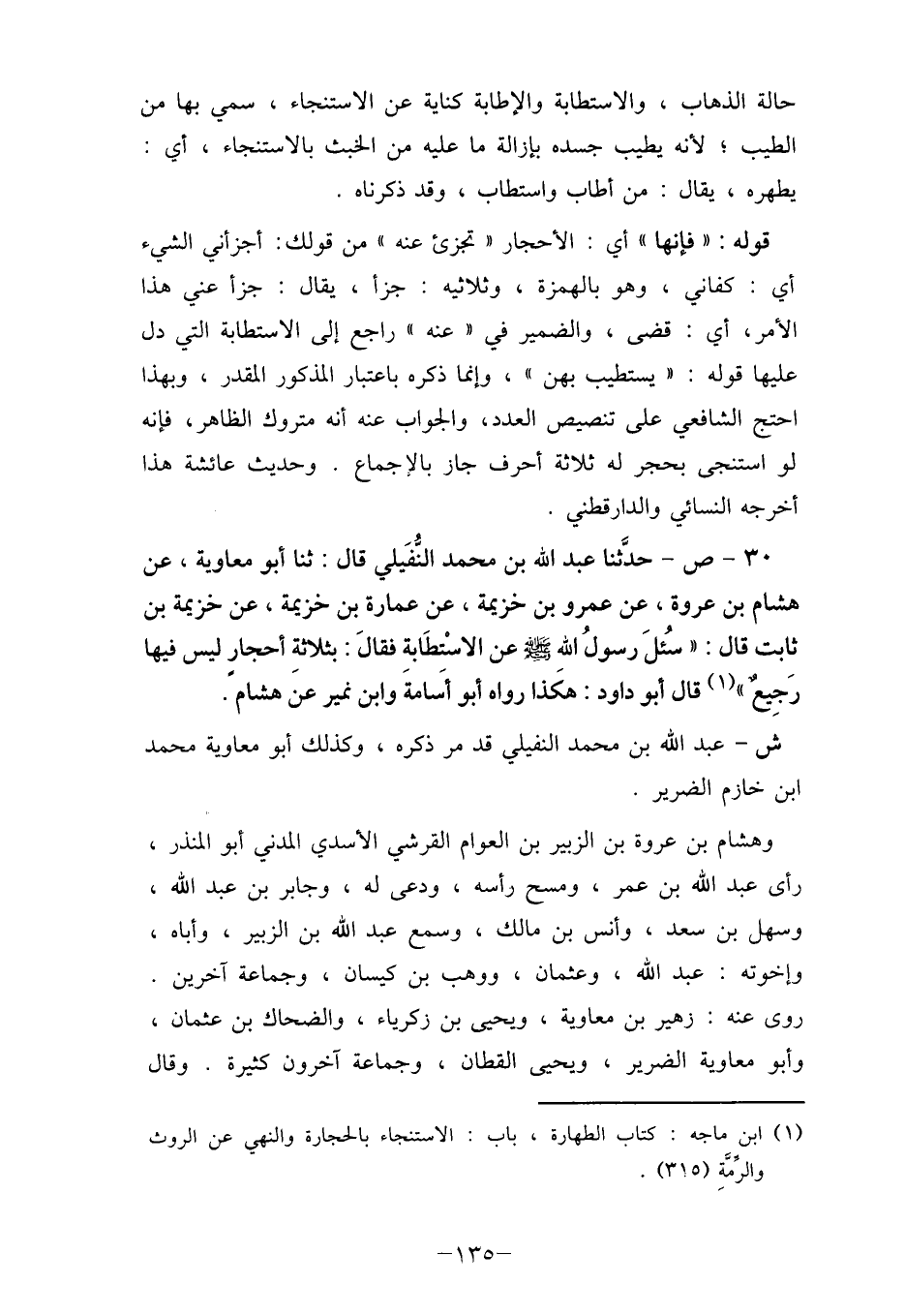 (1) ابن ماجه: كتاب الطهارة، باب: الاستنجاء بالحجارة والنهي عن الروث
