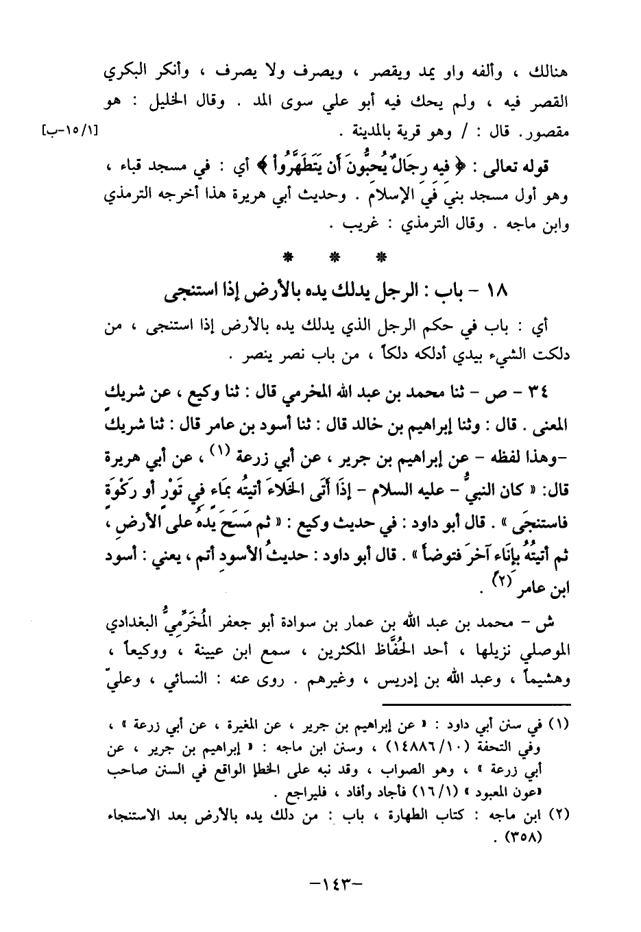 (2) ابن ماجه: كتاب الطهارة، باب: من دلك يده بالأرض بعد الاستنجاء.
