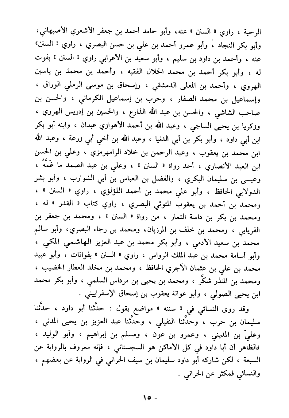 وأبو بكر النجاد، وأبو عمرو أحمد بن علي بن حسن البصري، راوي " السنن "