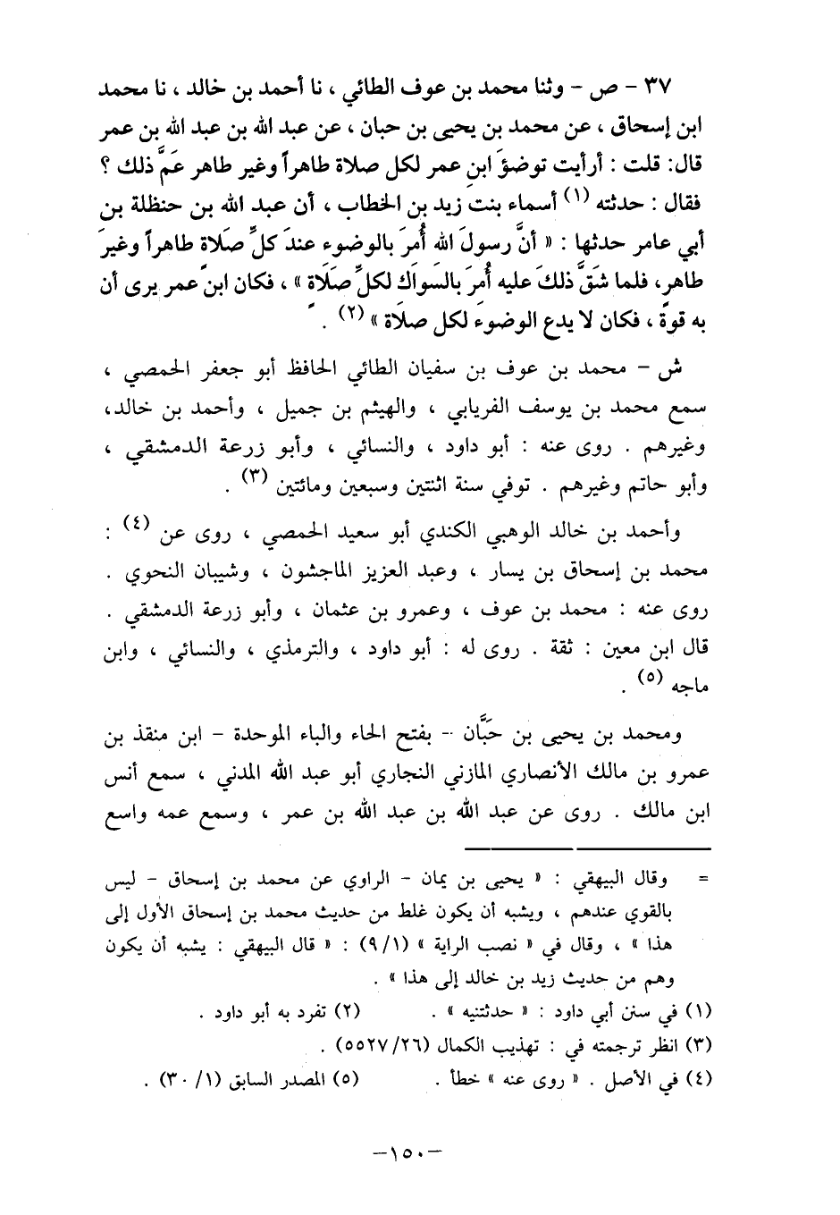 37- ص- وثنا محمد بن عوف الطائي، نا أحمد بن خالد، نا محمد