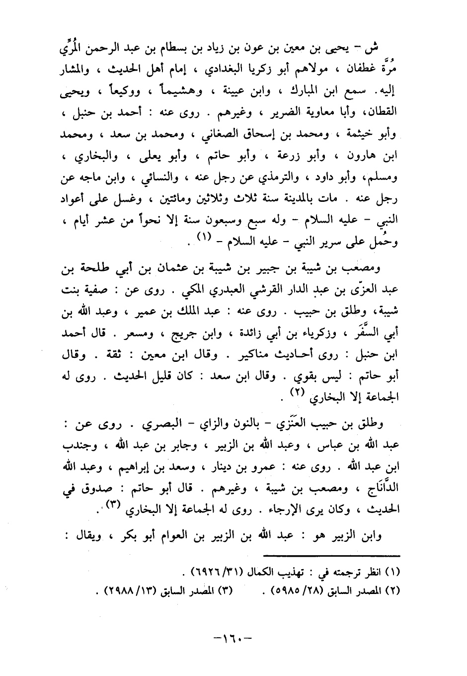 ش- يحيى بن معين بن عون بن زياد بن بسطام بن عبد الرحمن المُري
