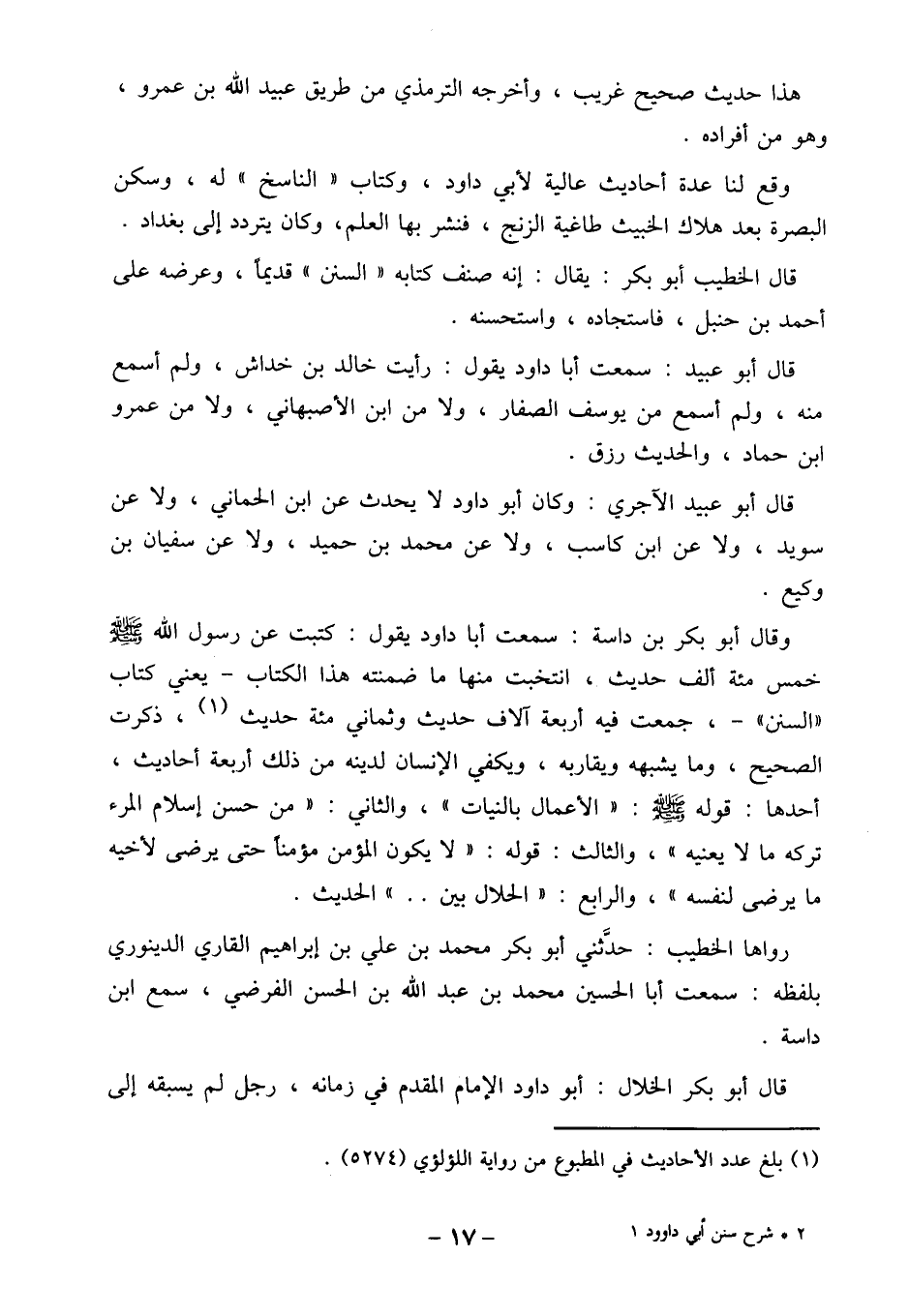 (1) بلغ عدد الأحاديث في المطبوع من رواية اللؤلؤي (5274) .