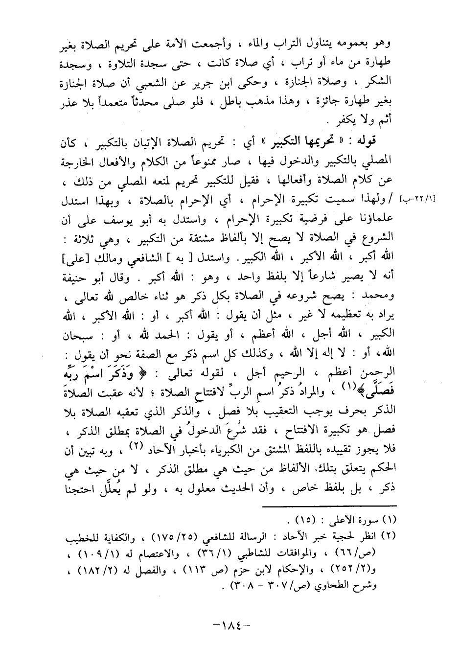 فلا يجوز تقييده باللفظ المشتق من الكبرياء بأخبار الآحاد (2) ، وبه تبين أن