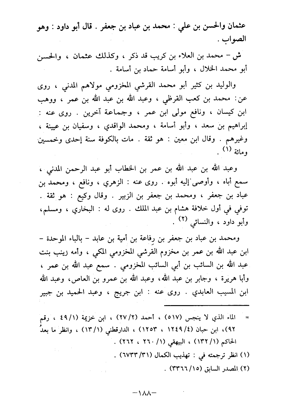 عثمان والحسن بن علي: محمد بن عباد بن جعفر. قال أبو داود: وهو