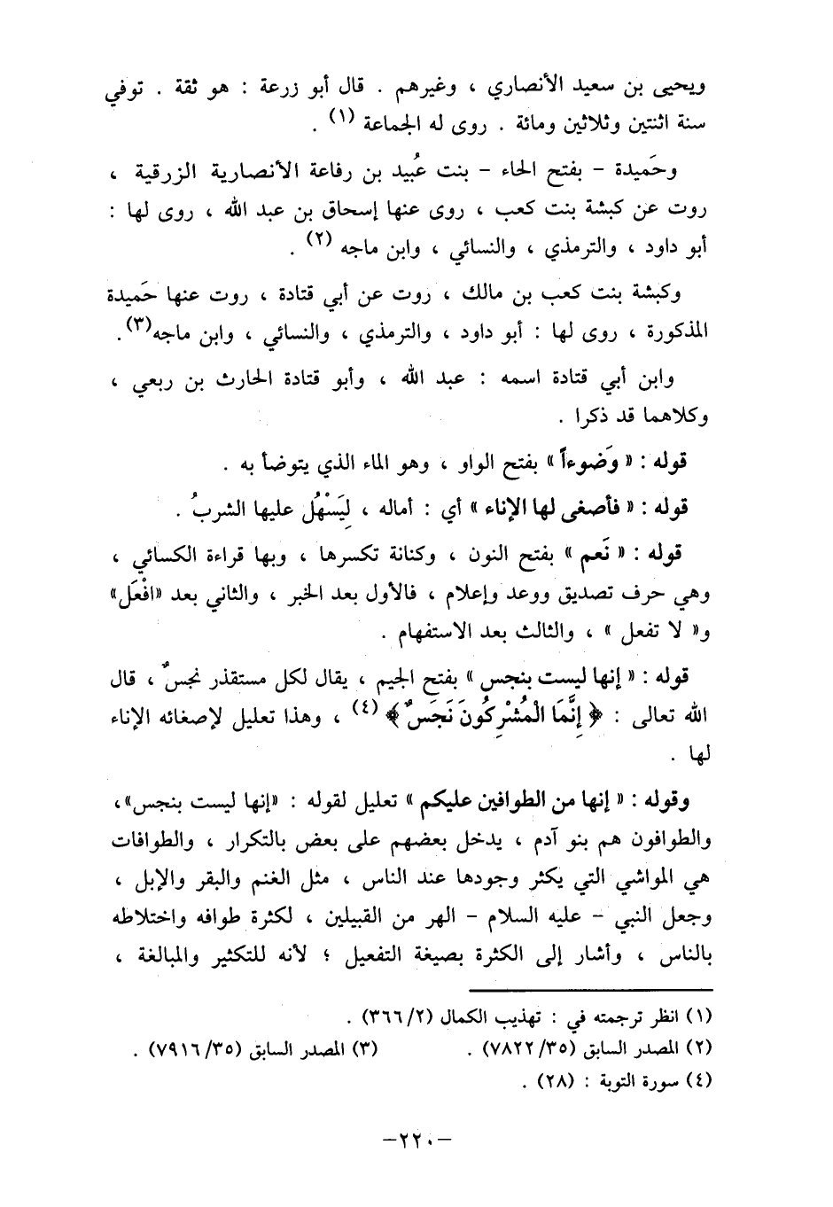 وقوله: " إنها من الطوافين عليكم " تعليل لقوله: " إنها ليست بنجس "،
