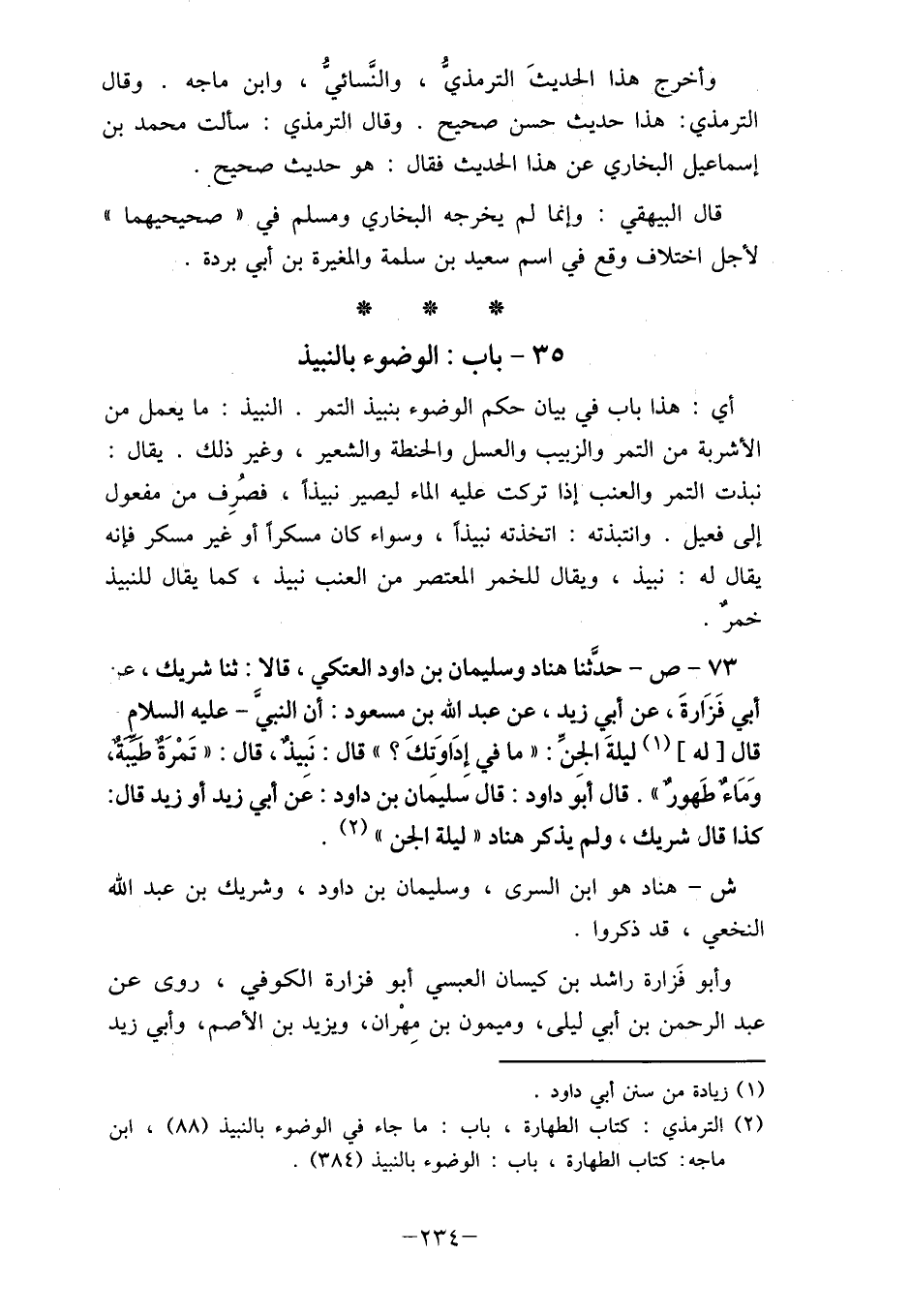 (2) الترمذي: كتاب الطهارة، باب: ما جاء في الوضوء بالنبيذ (88) ، ابن