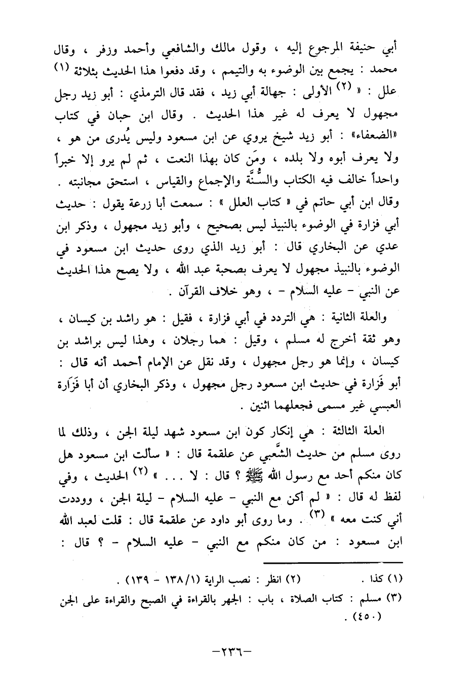 علل: " (2) الأولى: جهالة أبي زيد، فقد قال الترمذي: أبو زيد رجل
