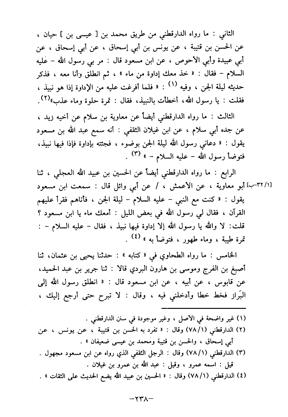 (3) الدارقطني (1/78) وقال: الرجل الثقفي الذي رواه عن ابن مسعود مجهول.