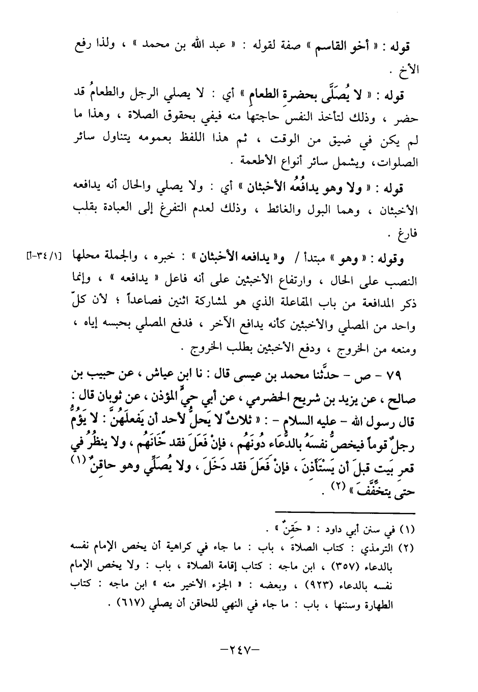 الطهارة وسننها، باب: ما جاء في النهي للحاقن أن يصلي (617) .