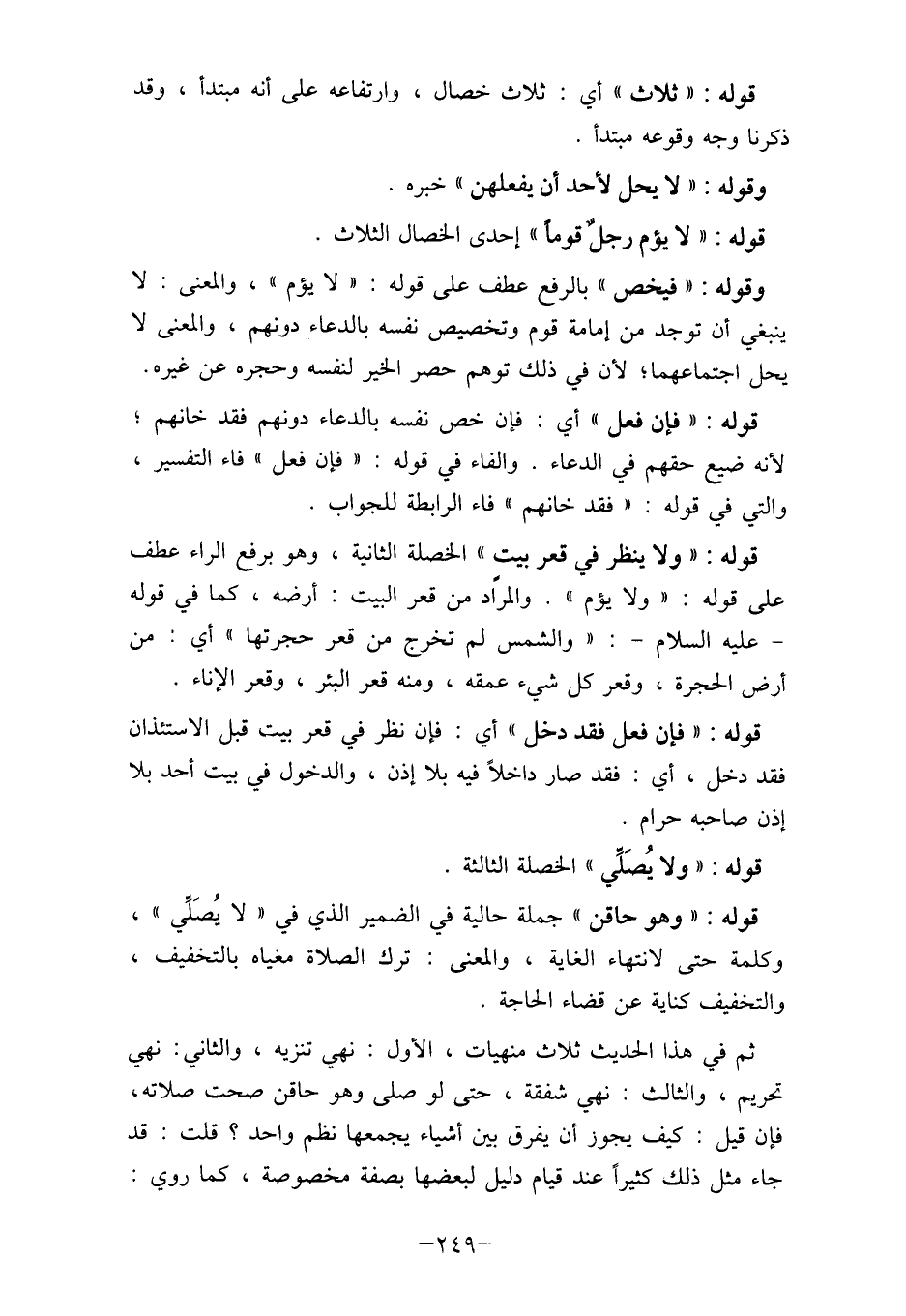 قوله: " لا يؤم رجلٌ قوماً " إحدى الخصال الثلاث.