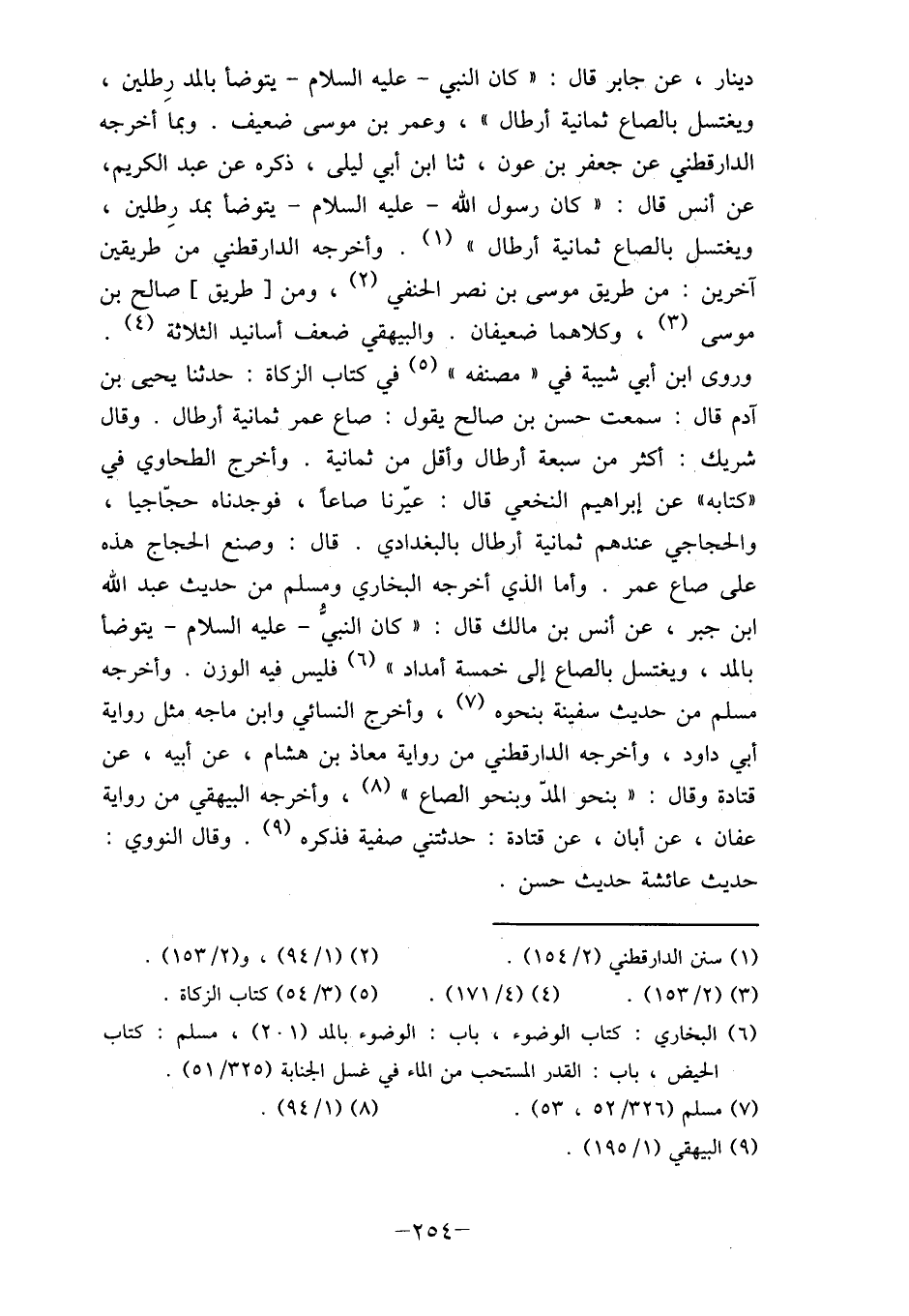 ويغتسل بالصاع ثمانية أرطال " (1) . وأخرجه الدارقطني من طريقين