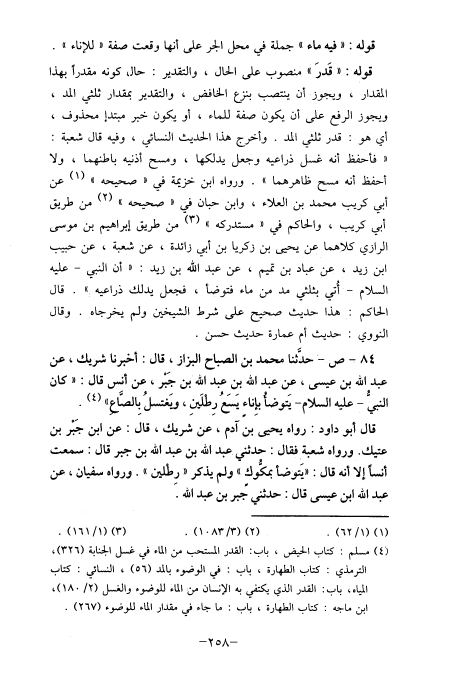 المياه، باب: القدر الذي يكتفي به الإنسان من الماء للوضوء والغسل (2/180) ،