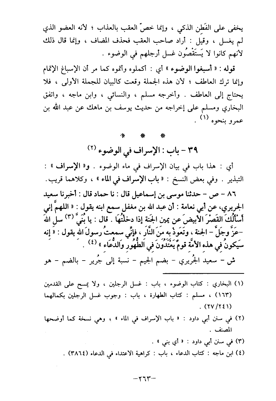 (2) في سنن أبي داود: " باب الإسراف في الماء "، وهي نسخة كما أوضحها