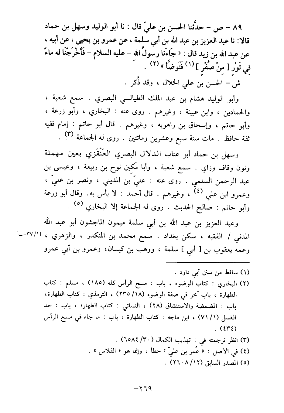 89- ص- حدثنا الحسن بن عليّ قال: نا أبو الوليد وسهل بن حماد